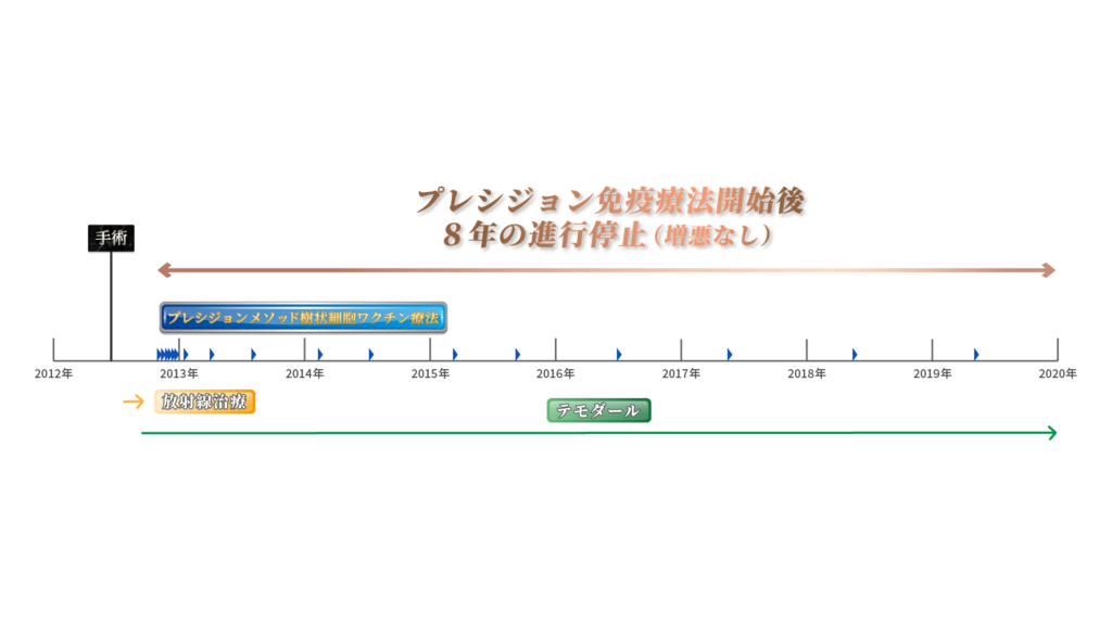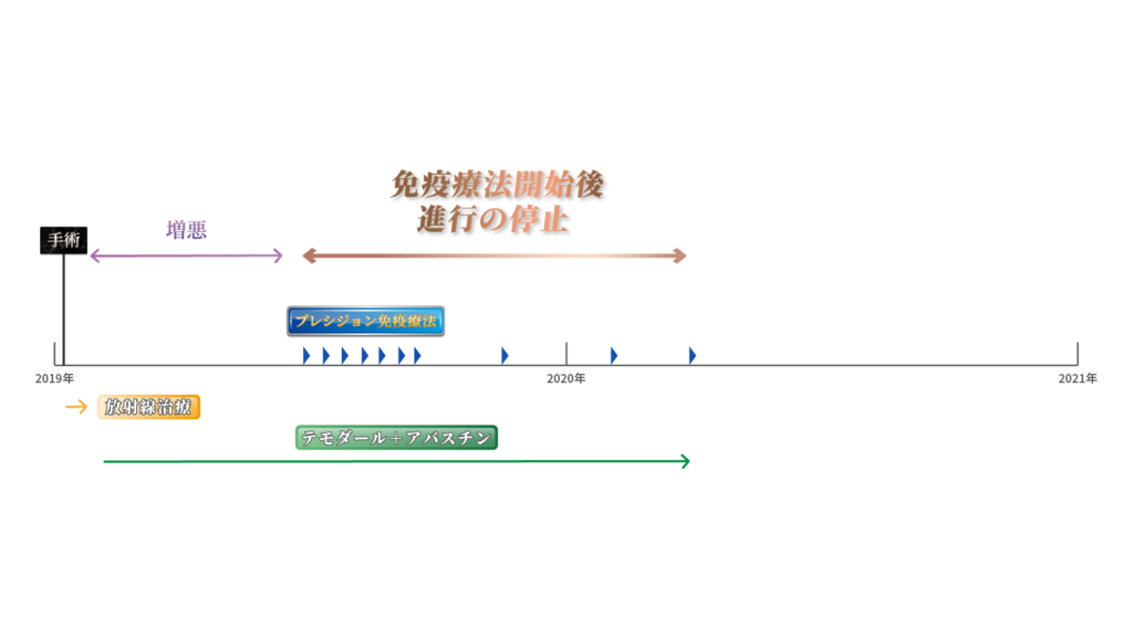 全て 悪性リンパ腫 肉腫 膵臓がん 肛門がん 大腸がん 膀胱がん 胆道がん(胆管がん・胆嚢がん) 脳腫瘍 胃がん 食道がん 胸腺がん 肺がん 頭頸部がん 乳がん 卵巣がん 子宮体がん 前立腺がん 治療実績 症例4 再発を繰り返す脳腫瘍(悪性グリオーマ)、標準治療+プレシジョン免疫療法で2年経過中 治療実績 症例3 脳腫瘍(悪性神経膠腫)、プレシジョン免疫療法開始後に進行停止 治療実績 症例2 手術で取り切れなかった脳腫瘍(悪性神経膠腫)、診断後3年良好な経過 治療実績 症例1 神経膠芽腫、8年間進行停止を維持